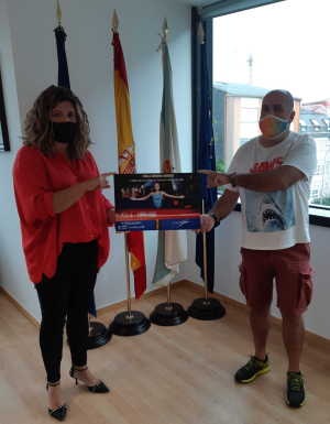 Narón, 28 de setembro de 2020. A alcaldesa, Marián Ferreiro, recibiu esta mañá ao presidente do club Náutico Narón, Amando Guerrero, que lle entregou unha fotografía da triatleta asturiana Paula Herrero, que se proclamou campiona de España élite en distancia olímpica no campionato celebrado en Banyoles (Girona) o pasado 5 de setembro. Herrero non puido acudir hoxe ao acto debido a que se atopa xa en Madrid, donde estudia e continúa adestrando, tal e como indicou Guerrero.